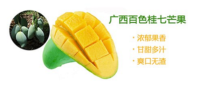 桂七芒果又名桂热82号,俗称桂七芒。它的品种来源于印度芒901号 实生变异株,是由广西亚热带作物研究所从秋芒实生群体中选出的优良品系,桂七芒花期较迟,属于晚熟品种,每年仅有7、8月两个月的供应期。其果实为S形,体型优雅,果皮呈现青绿色,成熟后呈黄绿色,主要分布在广东、广西、云南、福建等省。桂七芒果营养价值 丰富,食用具抗癌、美容、防治高血压、动脉硬化、防治便秘、清肠胃等功效。